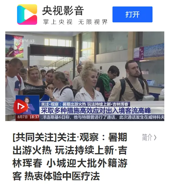 央视关注!吉林珲春 小城迎大批外籍游客 热衷体验中医疗法