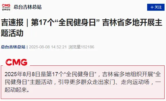 由延边广播电视台记者采写的新闻《第17个“全民健身日”主题活动》8月8日被央视新闻客户端综合采用。