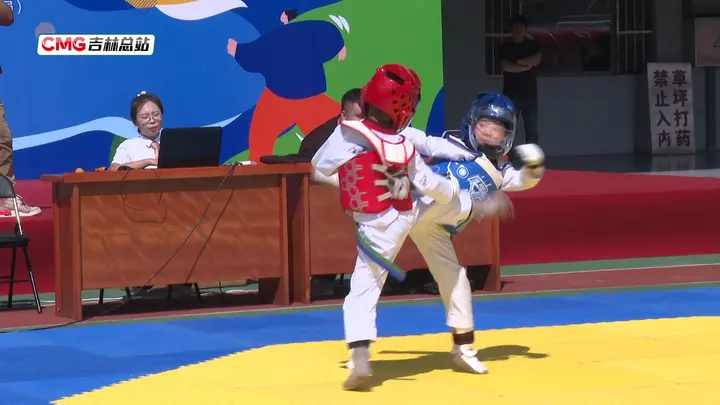吉林省延吉市跆拳道比赛参赛选手金善奎说:“我每天和小朋友们一起切磋技术、一起练跆拳道感觉非常开心,这项运动也让我身体更加健康,我非常喜欢这项运动。”