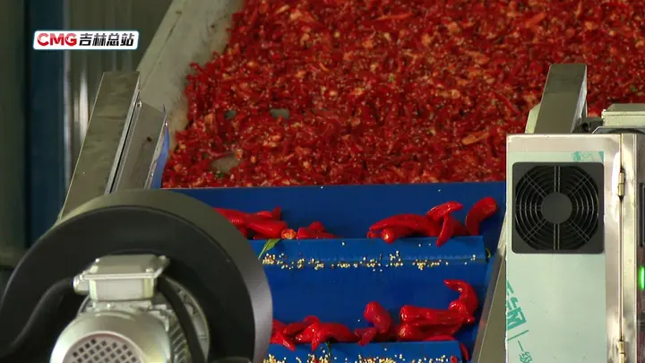 在吉成村四组的祥和蔬菜烘干厂,新鲜辣椒正在经历“蜕变”:经过人工筛选去杂后,辣椒进入机器脱水、烘干环节,鲜椒变成了可长期储存、便于运输的干辣椒。