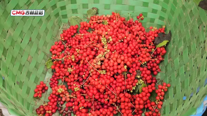 走进吉林省安图县亮兵镇会财村的五味子种植基地,五味子藤蔓沿着水泥桩攀缘而上,一串串红彤彤的五味子果实点缀其间,村民们手法娴熟地进行采摘,好一幅热闹的丰收图景。