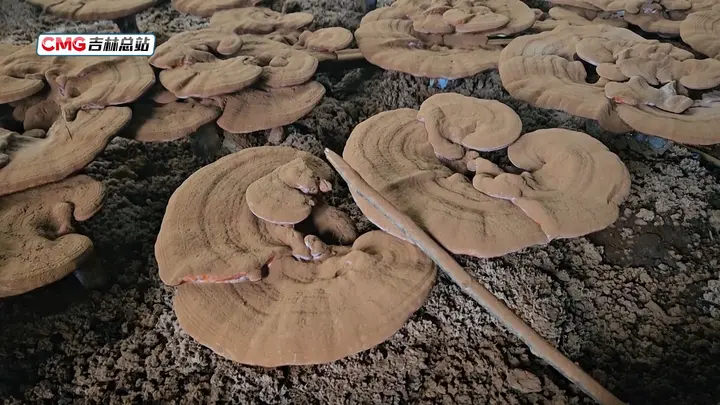 在吉林省安图县亮兵镇大西村灵芝种植基地,满棚的灵芝个头饱满,如同撑开的褐色小伞,长势格外喜人。